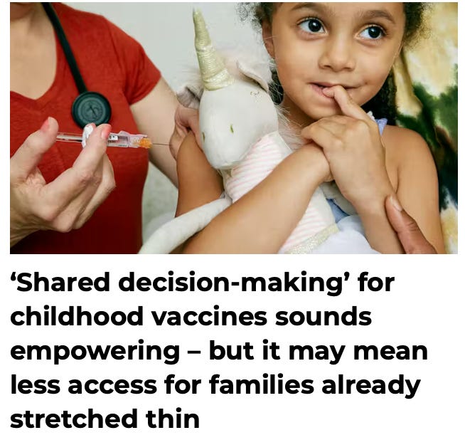 Shared decision-making sounds straightforward: a patient and their doctor putting their heads together to make an informed choice. But when applied to routine childhood vaccines, the concept shifts the burden of deliberation onto already-stretched clinicians and parents. …