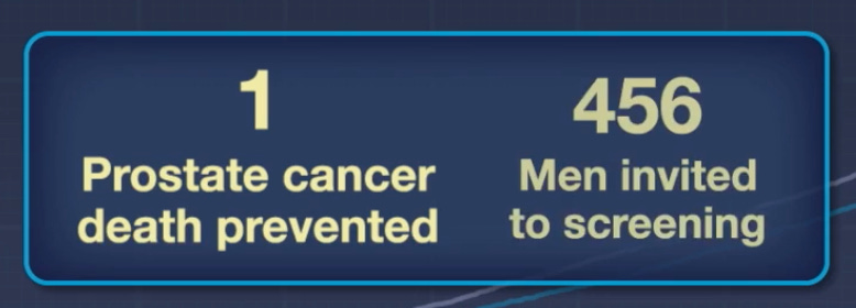 This may be the easiest statistic for most readers to grasp - 456 men would need to be screened in order to prevent one death.